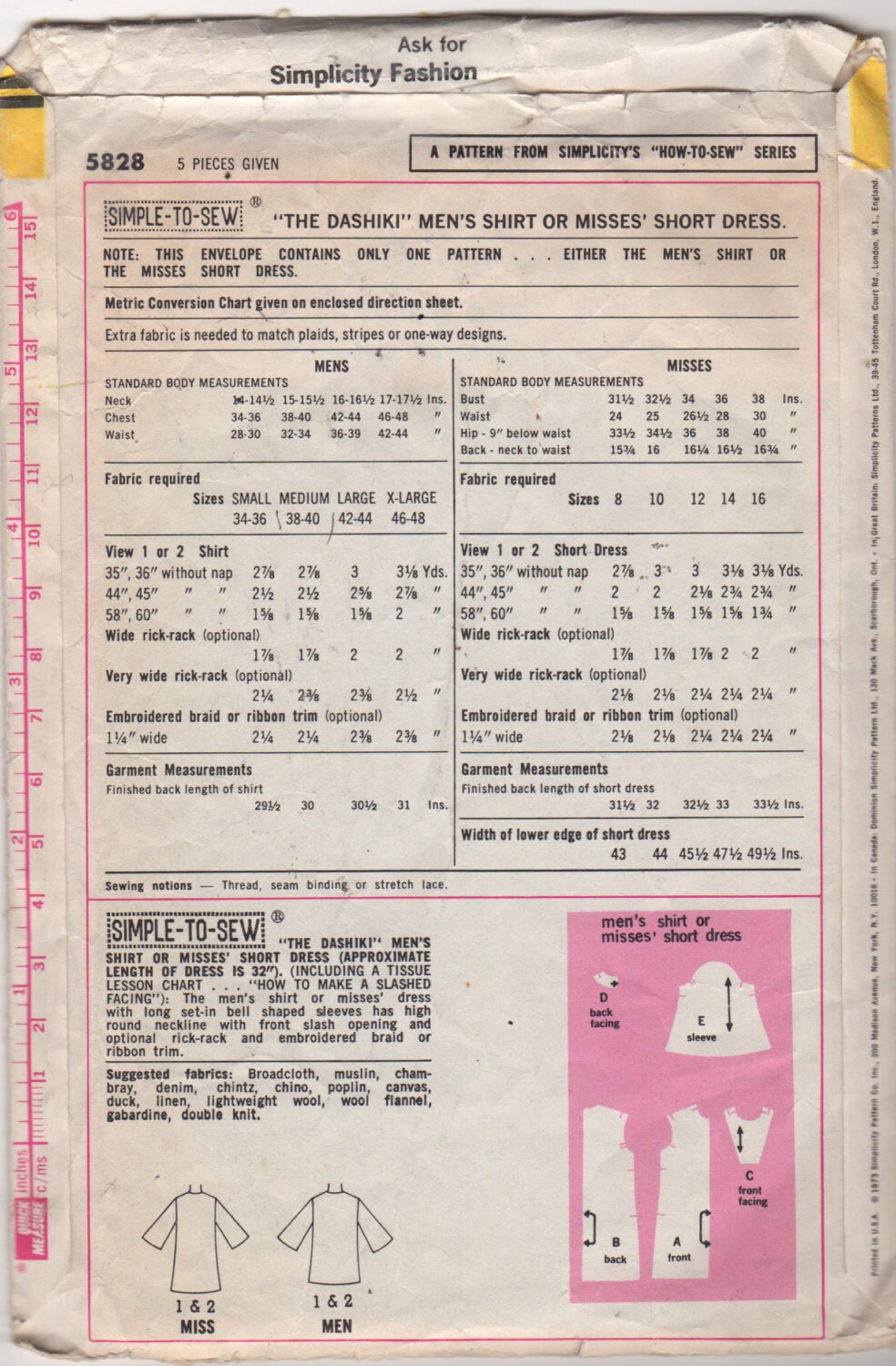 Simplicity 5828 1970s Mens Dashiki Pattern Ethnic African Etsy Osterreich